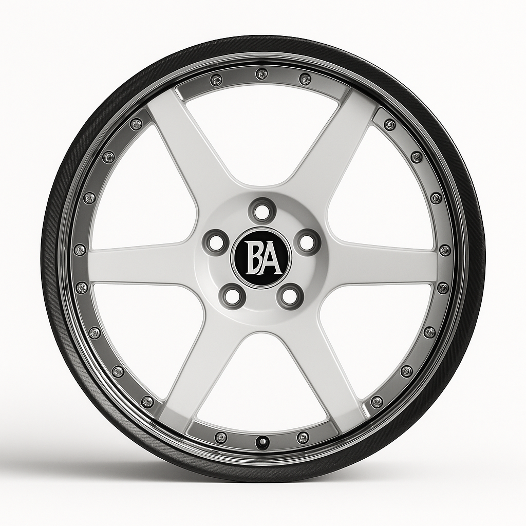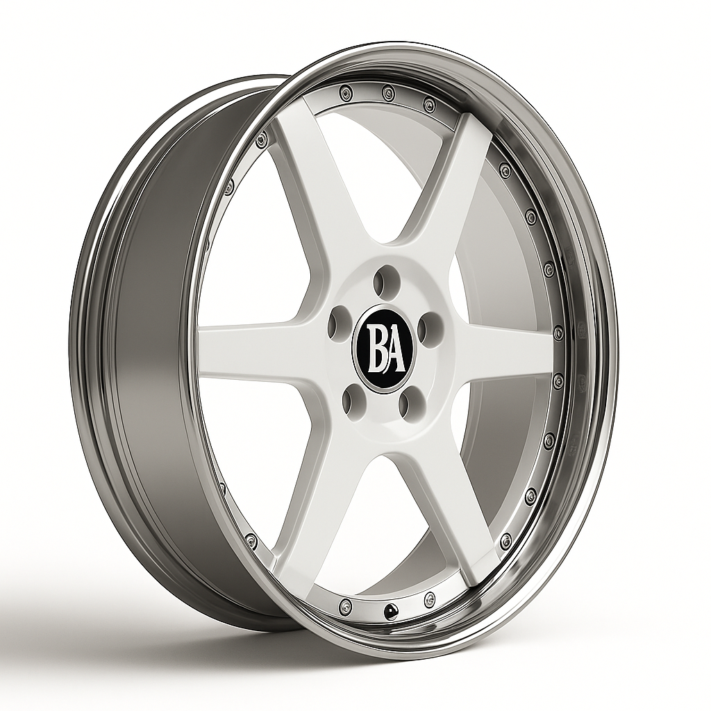 The BA Velocity 5 is the embodiment of clean strength and modern precision. With its bold 6-spoke layout, finished in crisp satin white and paired with a high-polish chrome lip, this wheel strikes the perfect balance between minimalist design and aggressive performance.