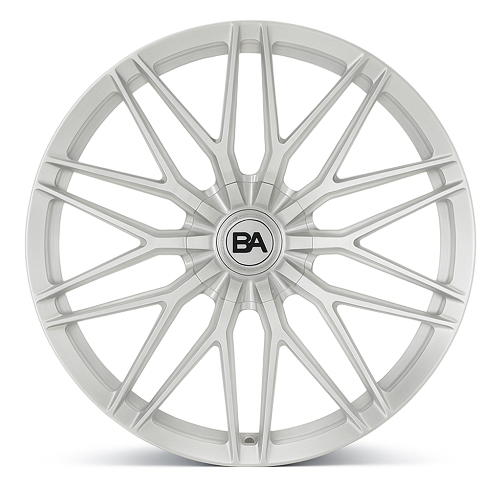 The BA Zephyr commands attention with its intricate multi-spoke mesh architecture and brilliant brushed silver finish. Crafted for enthusiasts who demand both refined design and elite performance, this wheel fuses motorsport heritage with luxury street appeal.