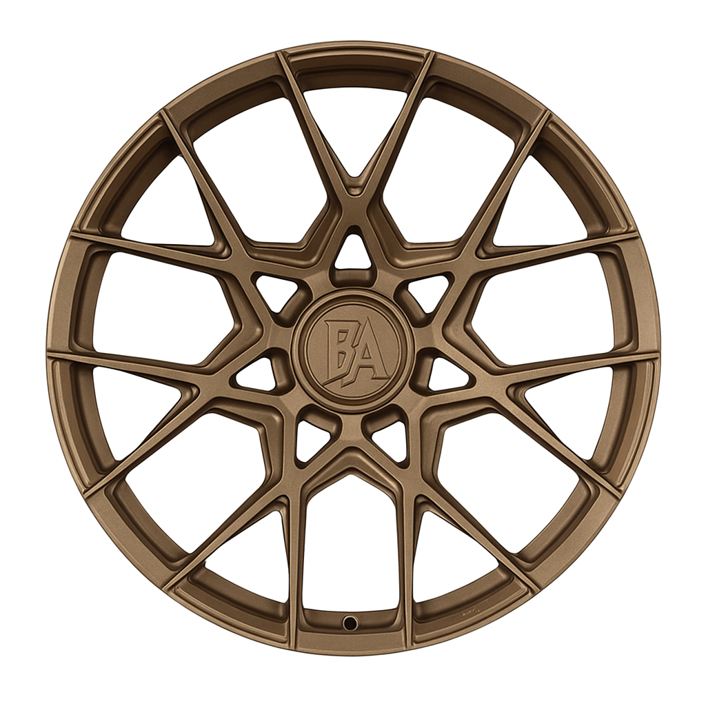 The BA Nyros redefines modern wheel design with its sharp, split mesh geometry and rich satin bronze finish. Crafted for the discerning enthusiast, Nyros fuses artistic complexity with engineering excellence—bringing head-turning elegance to high-performance platforms.
