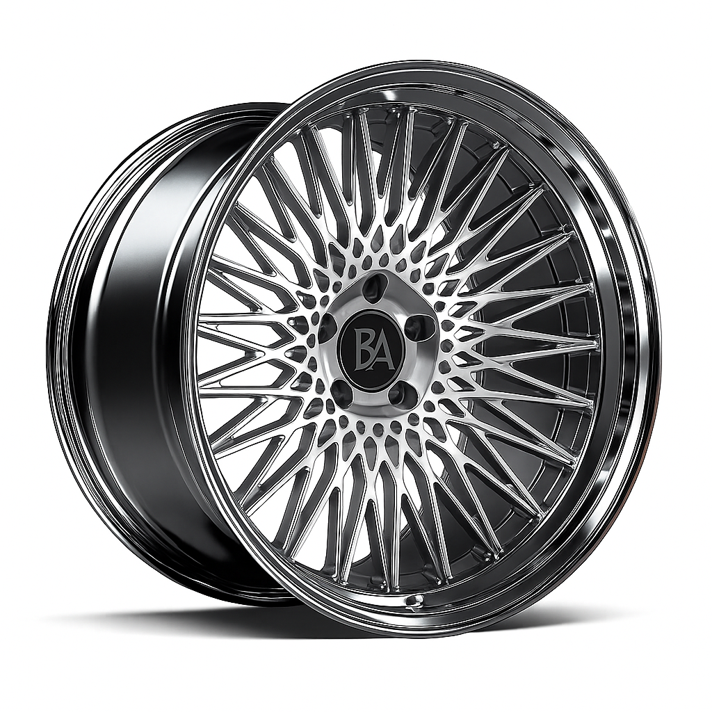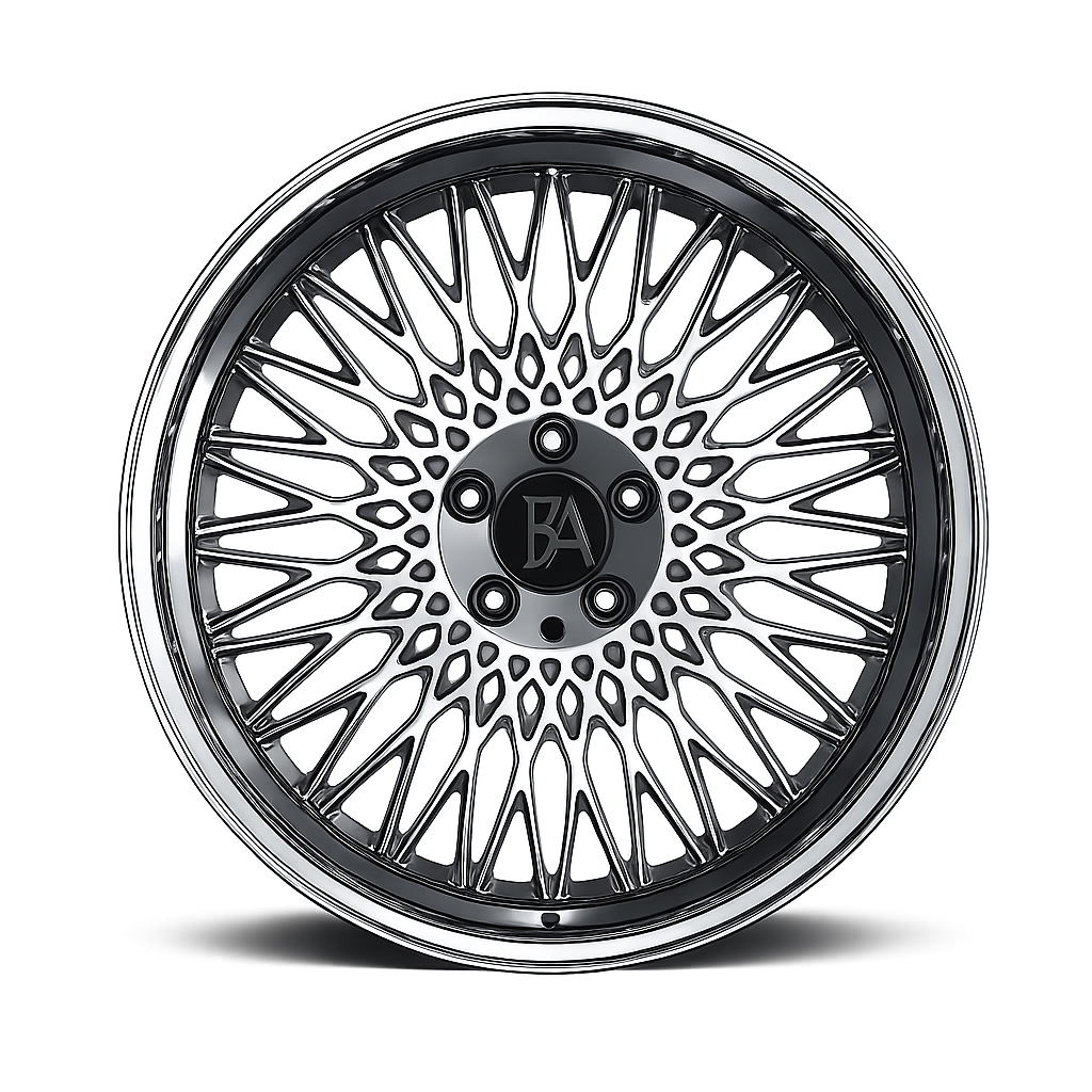 Command attention with the BA Lucent, a throw-back masterpiece that fuses timeless Euro-inspired cross-mesh styling with modern engineering. Its finely laced spokes flow seamlessly into a deep polished step lip, creating a hypnotic play of light and shadow that flatters both classics and contemporary builds alike.