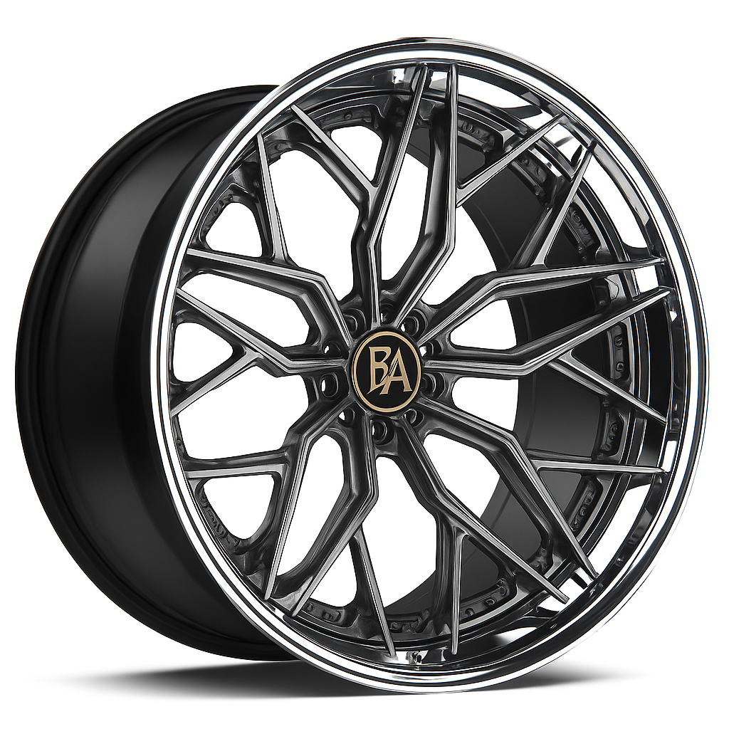 The BA Revenant is a wheel that refuses to be overlooked. With its aggressive twisted mesh design, gloss gunmetal finish, and deep chrome lip, the Revenant fuses track-ready engineering with a show stopping edge. This is more than a wheel—it’s a weapon of design.