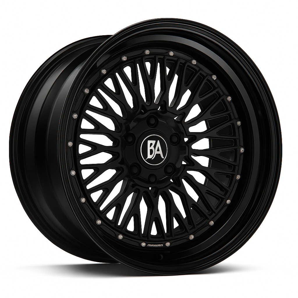 The BA Nocturne embodies timeless elegance reimagined in full blackout form. With its deep-dish profile, intricate multi-spoke mesh layout, and all-gloss black finish, the Nocturne delivers vintage-inspired luxury with a stealth-modern twist.